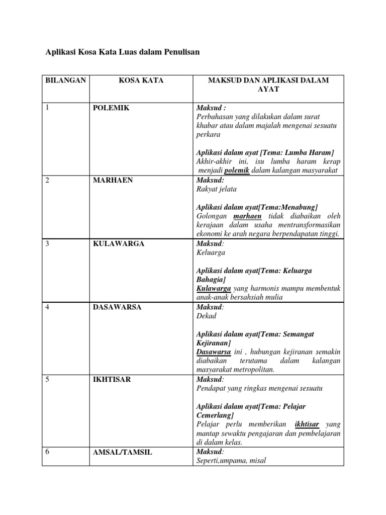 Doc Aplikasi Kosa Kata Luas Dalam Penulisan Siti Najmah Abdul Kadir Academia Edu